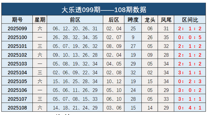 大乐透第2025108期出奖号统计:前区14、18、21、24、29,后区03、06。前区跨度15,龙头14,凤尾29,区间比比0:4:1。