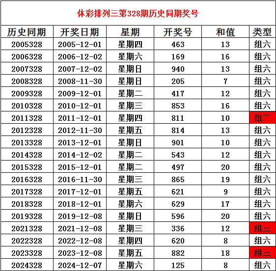 2025年12月8日胪列三第328期开奖,历史同工夫别开出奖号: