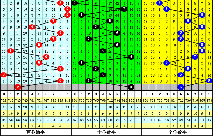 其中,号码奇偶比为27:30,奇偶号码开出比例绝顶;号码大小比为28:29,大小 号码出现比例基本绝顶;号码012路比为23:16:18,0路号码发达较热。